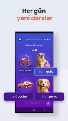 Mondly'nin başarısının temelinde, dil öğrenmeyi gerçek hayat senaryolarına taşıyan interaktif ve günlük dersler yatar. Gelişmiş ses tanıma teknolojisi sayesinde, telaffuzunuzu ana dili konuşan biri gibi anında geliştirirken, Mondly size doğru telaffuz konusunda anında geri bildirim sağlar. Oyunlaştırılmış içerikler ve pratik diyaloglar aracılığıyla, sıkıcı ezber yöntemlerinden sıyrılarak dilbilgisini ve kelime dağarcığını doğal bir akış içinde öğrenirsiniz. Mondly, her kullanıcının benzersiz öğrenme tarzına uyum sağlayarak, kişiselleştirilmiş bir eğitim sunar ve dilin karmaşık kurallarını bile anlaşılır hale getirir.