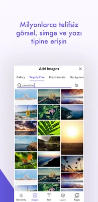 Desygner, tasarım sürecinizde size tam bir özgürlük sunar. Kapsamlı telifsiz görsel, yazı tipi ve simge kütüphanesi sayesinde ek bir ücret ödemeden milyonlarca kaynağa erişebilirsiniz; üstelik her gün yenileri ekleniyor. Profesyonelce hazırlanmış binlerce şablon, reklam panolarından albüm kapaklarına kadar geniş bir yelpazede ihtiyaçlarınıza cevap verirken, kendi özgün şablonlarınızı ve düzenlerinizi oluşturma imkanı da sunar. Fotoğraflarınıza metin, grafik ve çeşitli efektler ekleyebilir, tasarımlarınızı telefonunuzda, tabletinizde veya bilgisayarınızda dilediğiniz yerde zahmetsizce düzenleyebilirsiniz. Hazırladığınız projeleri saniyeler içinde sevdiklerinizle paylaşabilir, hatta doğrudan cihazınızdan basıma gönderebilirsiniz.
