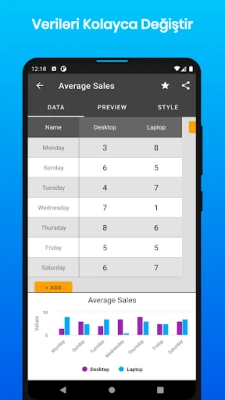 Kullanıcı dostu arayüzü sayesinde veri girişi hiç bu kadar zahmetsiz olmamıştı; basit ve anlaşılır veri tablosu ile bilgileriniz hızla diyagramlara dönüşür. Uygulama, görselleştirme sürecini basitleştirirken, çıktı kalitesinden asla ödün vermez. Tamamladığınız çalışmaları cihazınızın galerisine kaydedebilir veya tek bir dokunuşla iş arkadaşlarınızla, ekip üyelerinizle veya sosyal medya platformlarınızda paylaşarak etkileşimi artırabilirsiniz. Verilerinizi sadece göstermekle kalmayıp, onlara hayat vermek ve hikayenizi görsel olarak anlatmak için **Diyagram ve Grafik Oluşturma Programı** ideal çözümdür.