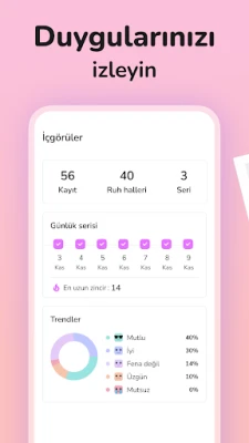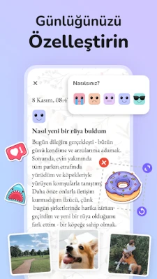 Kilitli Günlük ile her yazınız, size özel birer hazineye dönüşür. Yazılarınıza fotoğraflar ekleyerek anılarınızı daha canlı kılabilir, her okuduğunuzda o anları yeniden yaşayabilirsiniz. Duygu ve ruh hâli takibi özelliği sayesinde içsel yolculuğunuzda size rehberlik eder, kendinizi keşfetmenizi sağlar. Planlarınızı düzenlemek, önemli tarihleri hatırlamak için takvim ve hatırlatma özelliklerinden yararlanırken, günlük içgörülerinizi ve notlarınızı kolayca kaydedebilirsiniz. Üstelik, tamamı Türkçe olarak şifrelenmiş yapısıyla yazdıklarınızın gizliliği daima güvence altındadır.