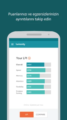Lumosity, alanında uzman bilim insanları tarafından özenle geliştirilmiş, benzersiz bir zihin egzersizi programıdır. Dünya genelinde 70 milyonu aşkın kullanıcısıyla zihinsel keskinliğinizi desteklemek üzere tasarlanan Lumosity, hafıza, dikkat, problem çözme ve esneklik gibi temel bilişsel yeteneklerinizi sınayacak 25'ten fazla eğlenceli oyunu günlük, kişiselleştirilmiş bir antrenman akışında bir araya getirir. Her oyun, bireysel performansınıza dinamik olarak uyum sağlayarak zihinsel gelişim yolculuğunuzda size özel bir deneyim sunar.