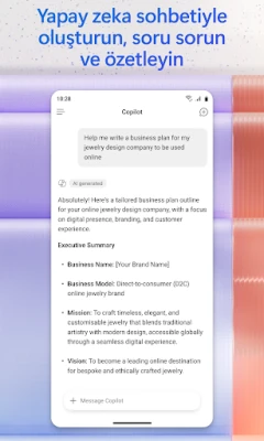 Fikirleri, belgeleri ve bağlantıları tek bir yerde birleştirerek projelerinizi sorunsuz bir şekilde yönetin ve Copilot Not Defterleri aracılığıyla bu unsurları özetleyip birbirine bağlayın. Telefonunuzdaki Word, Excel veya PDF dosyalarını kolayca yükleyerek anında akıllı yanıtlar alın ve Microsoft 365 Copilot'un sizin için oluşturduğu dosyaları doğrudan cihazınıza kaydedin. Bu uygulama, Word, Excel, PowerPoint ve PDF dosyalarını tek bir merkezi platformda bir araya getirerek, hareket halindeyken dosya bulma, düzenleme, belge tarama ve içerik oluşturma süreçlerinizi basitleştirir. İş, okul veya kişisel bir Microsoft hesabıyla erişim sağlayarak bu kapsamlı deneyimden hemen yararlanmaya başlayın.